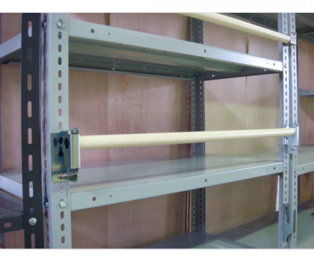 - Pipe holder and pipe bar mounted on both sides of shelf prevent items stored on shelves from falling.