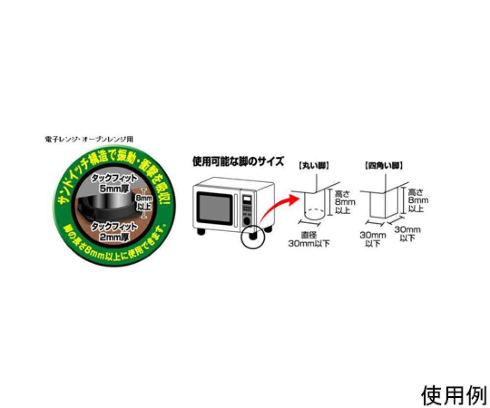 - Fitting target-For furniture with legs (for example, microwave, etc.)(Leg size:Dia. 30mm or, 30x30mm or less, height:8mm or more)