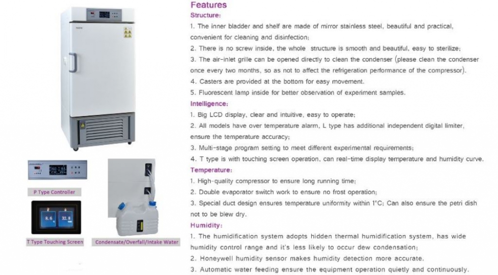 CHI series Constant Temperature & Humidity Incubator can be widely used for aseptic test of drugs, textiles, food processing and sample stability test, raw material performance test, product packaging life test, etc.