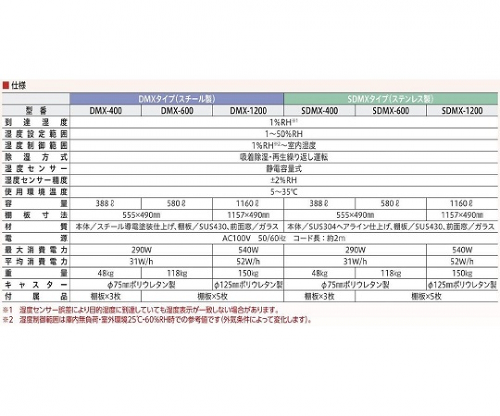 - Reaching humidity: 1%RH (due to humidity sensor error, the humidity display may not match even when the desired humidity has been reached. )