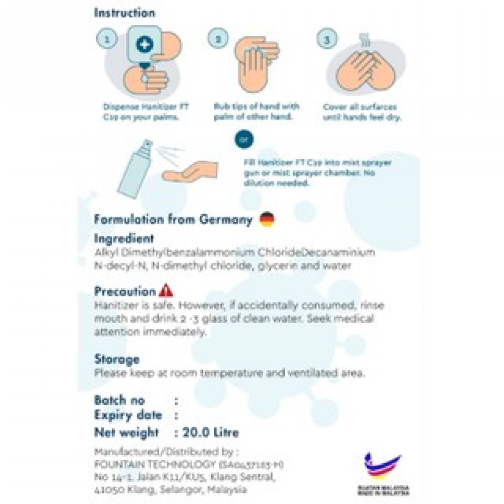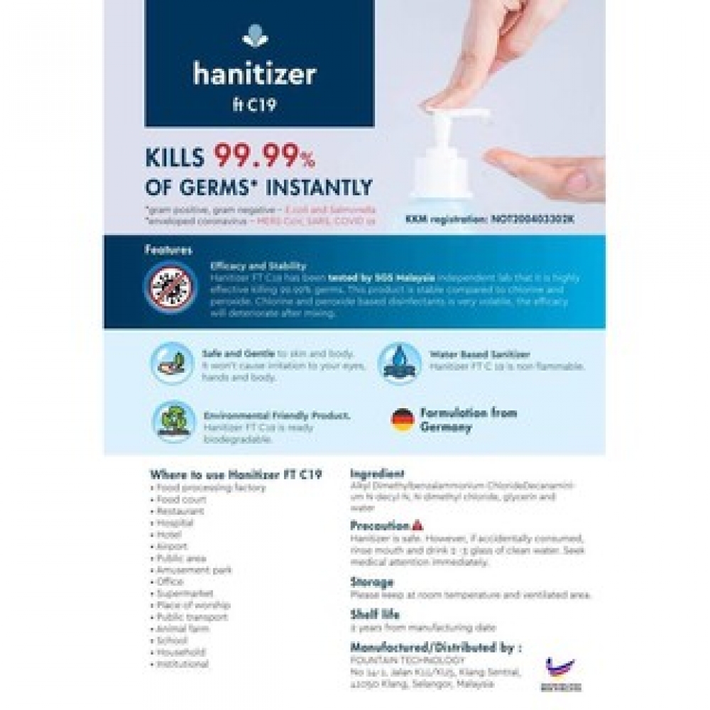 Hand Sanitizer (hanitizer FT C19 has been tested by SGS Malaysia.