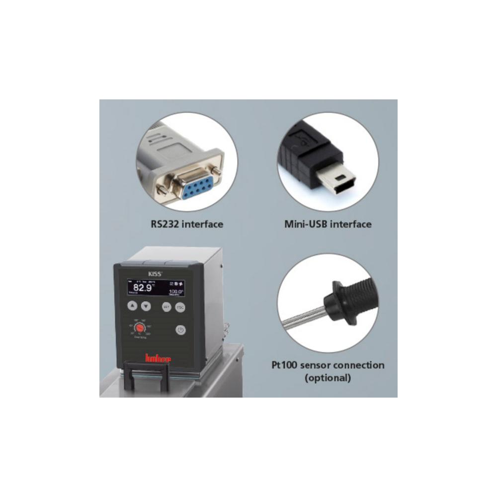 Insulated cooling baths for thermoregulation of objects directly in the thermostat bath or can be used for externally attached applications using the pump connections. Suitable for heating and cooling tasks such as sample temperature control, materials testing, quality control, analyses, etc. The new KISS temperature controller combines state-of-the-art technology with simple operation and stylish design.