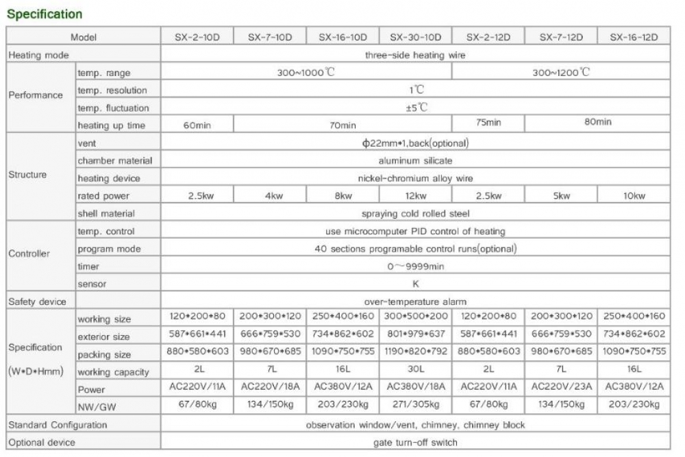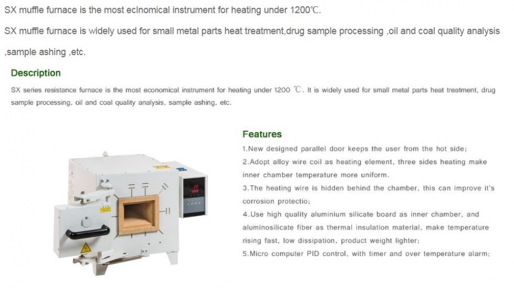- Use high quality aluminium silicate board as inner chamber, and aluminosilicate fiber as thermal insulation material, maketemperature rising fast, low dissipation, product weight lighter;
