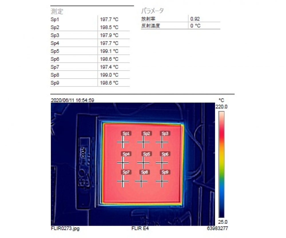 - It heats up to the maximum temperature in about 30 minutes. The top plate temperature distribution width is 4℃ (when 200℃ is set)