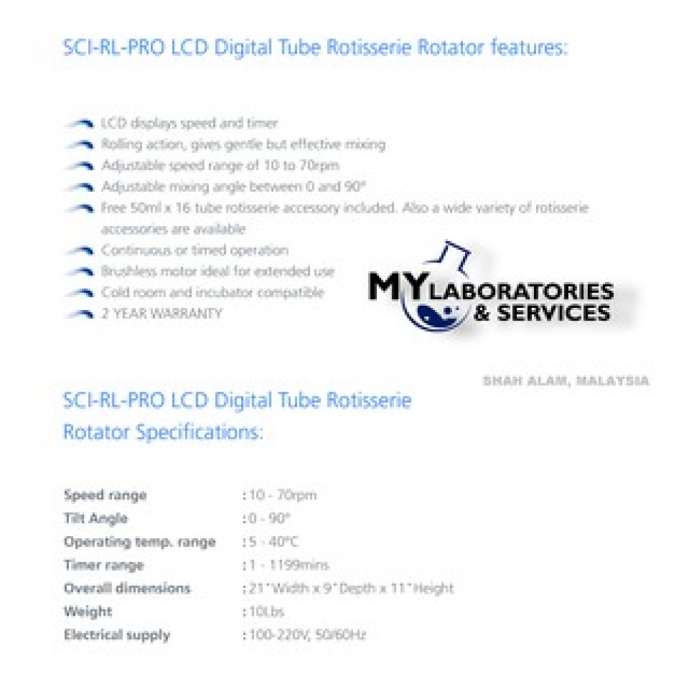 SCILOGEX Tube Rotator 10~70 rpm SCI-RL-Pro LCD Digital Rotisserie Tube Rotator(Malaysia)