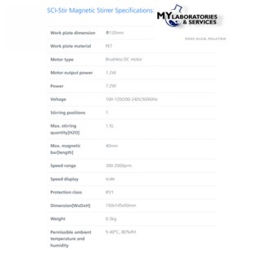 SCI-Stir Magnetic Stirrer Specifications: