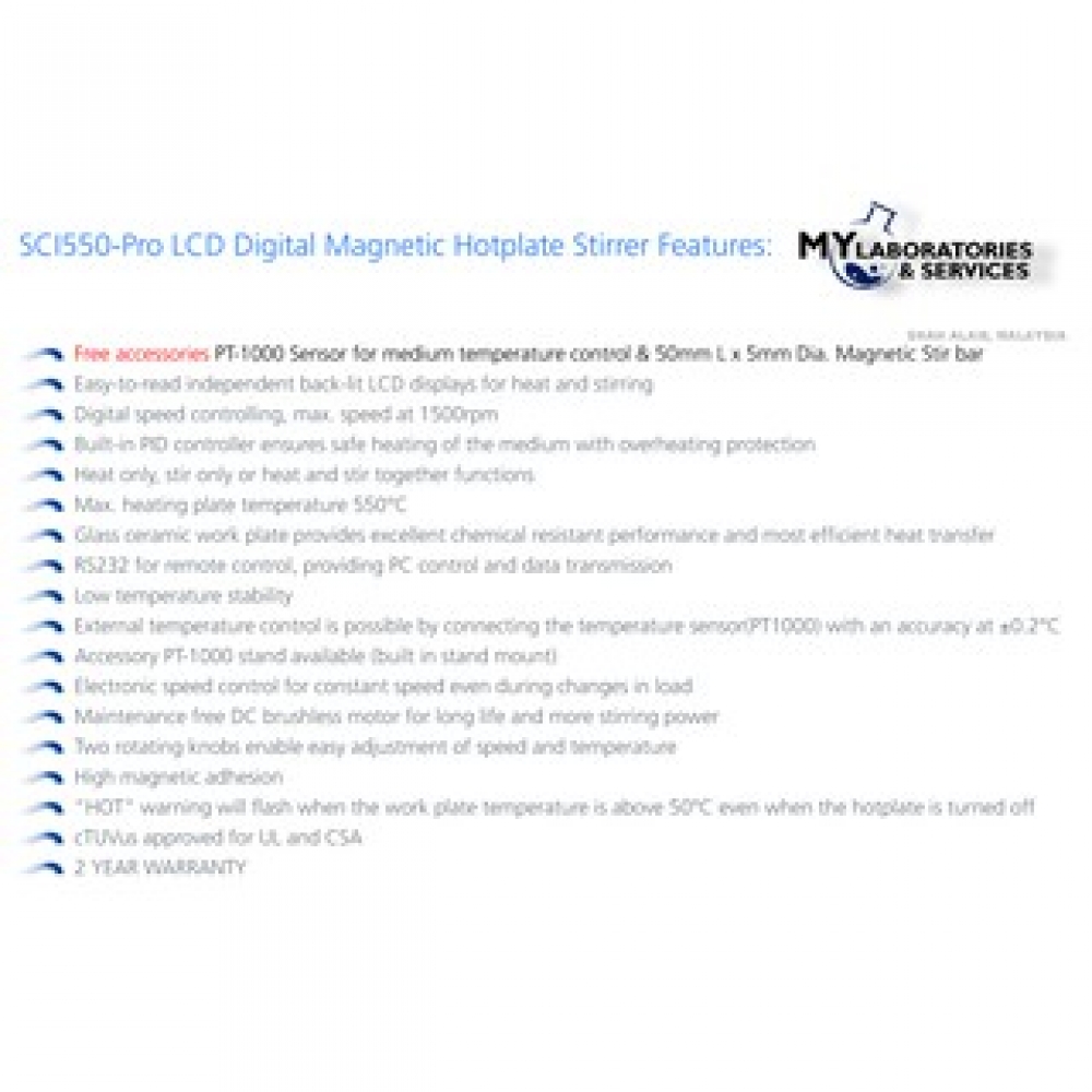 SCILOGEX Hot Plate Stirer SCI550 Pro (Malaysia) 7inch by 7 inch, 550 degree Celcius max, LCD Digital