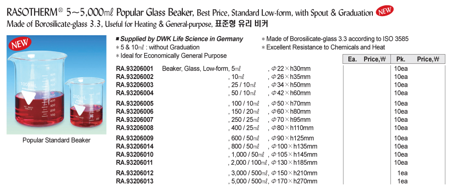 RASOTHERM® 5~5,000ml Popular Glass Beaker, Best Price, Standard Low-form
