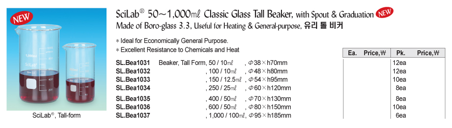 SciLab® 50~1,000ml Classic Glass Tall Beaker