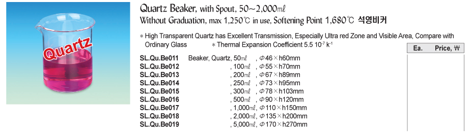 Description : Beaker, Quartz, 1000ml, 110 x h150mm