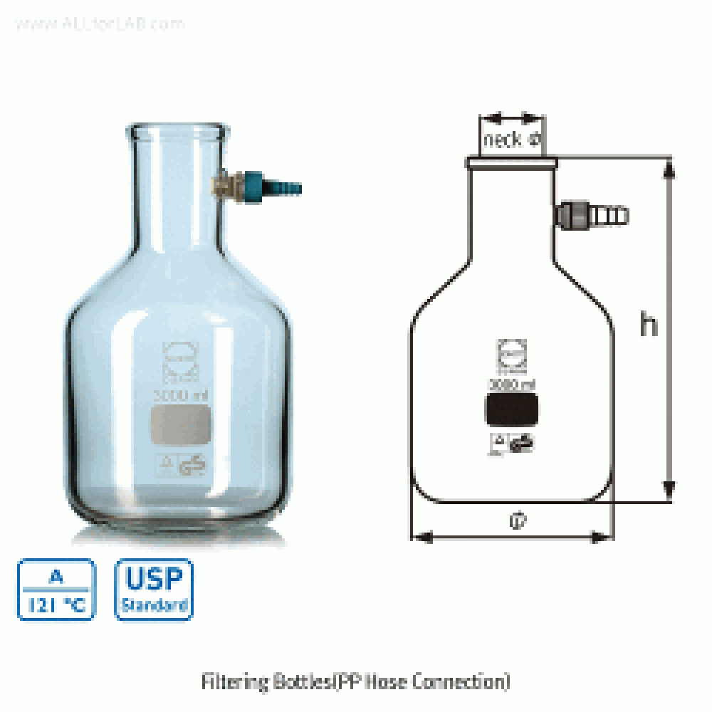 DURAN® Premium 3~20 Lit Filtering Bottle, Boro-glassα3.3For High Vacuum