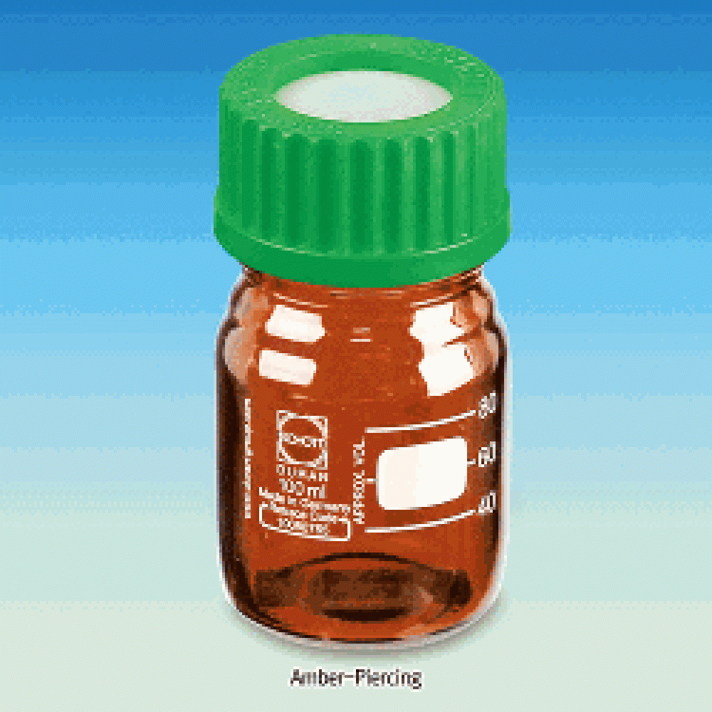 Description : Piercing Bottle, Amber, w/ 3mm PTFE/Butyl Septa. Sealed GL-cap, 100ml