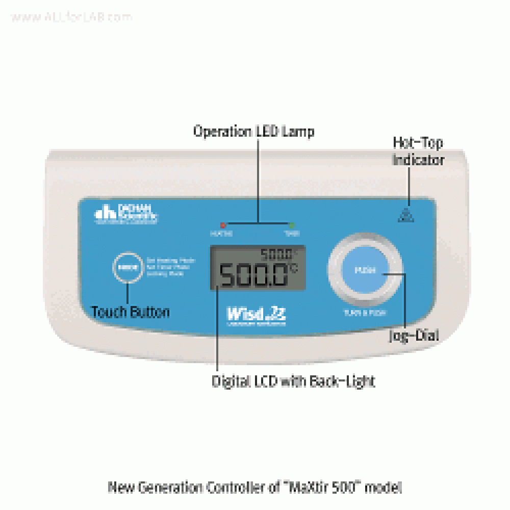 DAIHAN-brand® Hi-Temp.(500℃) Digital Hotplate Stirrers, “MaXtir™ 500”, Solid Ceramic Glass