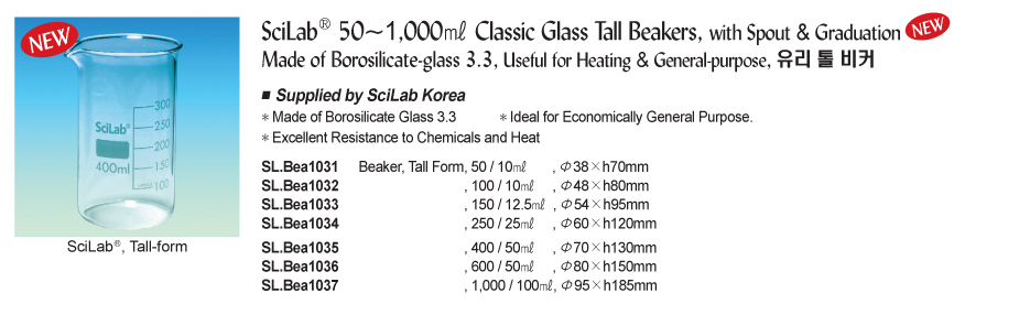 SciLab® 50~1,000ml Classic Glass Tall Beakers