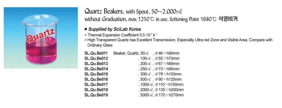 Quartz Beakers, with Spout, 50~2,000ml